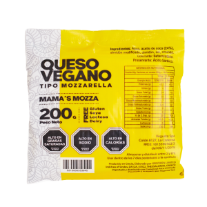 - Queso Mozzarella Mama’s Mozza laminado. Cada unidad trae 10 láminas de 20 gramos cada una en bolsa de 15×16. Marca: VEGUSTA