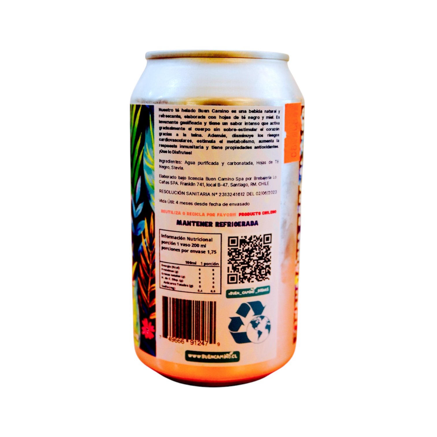Bebida Natural de Té Negro; Único té gasificado del mercado, exquisito sabor natural a Té Negro y de suave dulzor. Elaborada a partir de agua purificada y carbonatada, hojas de té negro, miel y azúcar . Libre de sellos, colorantes y conservantes artificiales.