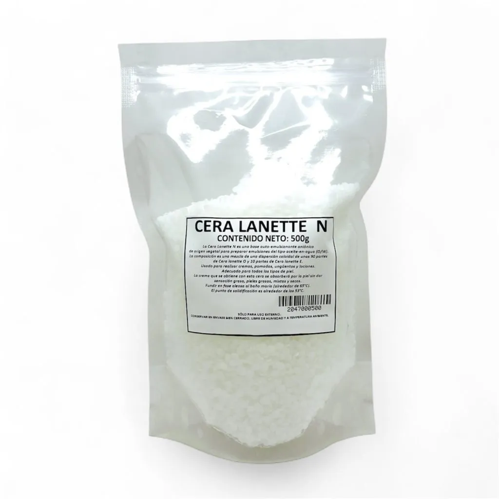 La Cera Lanette N es un emulsionante no iónico de alta calidad, ampliamente utilizado en la elaboración de cremas, lociones, ungüentos y otros productos cosméticos. Su función principal es estabilizar emulsiones tipo aceite en agua (O/W), aportando una textura suave, cremosa y de rápida absorción. Es un ingrediente esencial en formulaciones cosméticas tanto artesanales como profesionales.