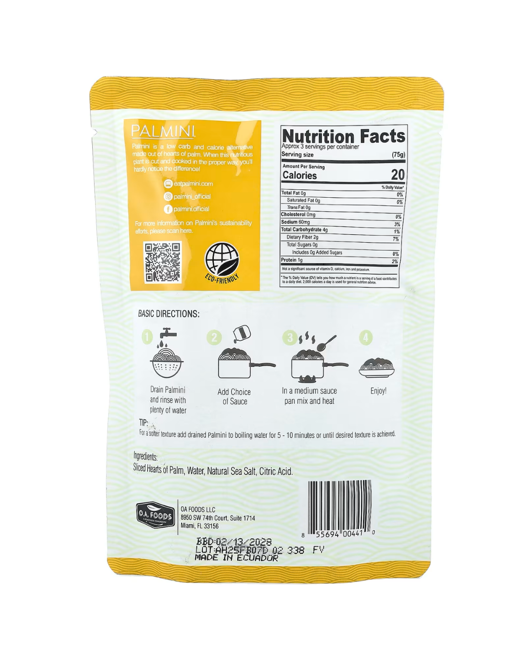 Consejo: Para obtener una textura más suave, agregue el Palmini escurrido al agua hirviendo durante 5-10 minutos o hasta lograr la textura deseada.